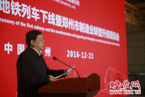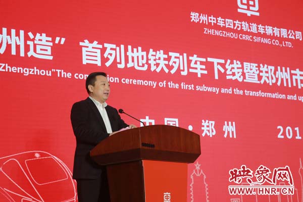 期間,河南省政府副秘書長王夢飛宣讀省委省政府賀信,中車青島四方機車車輛股份有限公司總經(jīng)理馬云雙代表投資方介紹企業(yè)產(chǎn)品產(chǎn)業(yè)情況,“鄭州造”首列地鐵列車用戶方鄭州市軌道交通有限公司黨委書記、董事長、總經(jīng)理張洲致辭;鄭州市政府市長程志明分別做重要講話。