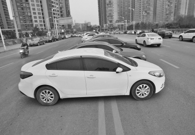 機(jī)動(dòng)車道的雙黃線上成了停車場