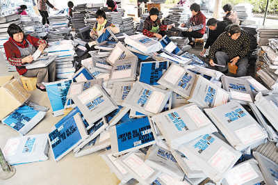 快遞公司員工在倉(cāng)庫(kù)外就地將包裹掃描后裝車。阿里巴巴發(fā)布數(shù)據(jù)稱,淘寶網(wǎng)平均每分鐘售出4.8萬件商品。