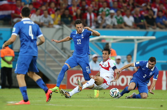 北京時(shí)間6月30日4時(shí),世界杯1/8決賽第4場(chǎng)在累西腓伯南布哥球場(chǎng)展開較量,哥斯達(dá)黎加120分鐘與希臘戰(zhàn)為1比1,點(diǎn)球決戰(zhàn)5比3勝出,首次打進(jìn)世界杯8強(qiáng),也成為2002年美國(guó)之后首進(jìn)8強(qiáng)的中北美洲球隊(duì),將與荷蘭爭(zhēng)奪半決賽席位。下半場(chǎng),哥斯達(dá)黎加隊(duì)長(zhǎng)魯伊斯打破僵局,但中衛(wèi)杜阿爾特此后兩黃下場(chǎng)。補(bǔ)時(shí)階段,帕帕斯塔索普洛斯扳平比分。點(diǎn)球戰(zhàn),哥斯達(dá)黎加門將納瓦斯撲出耶卡斯點(diǎn)球。