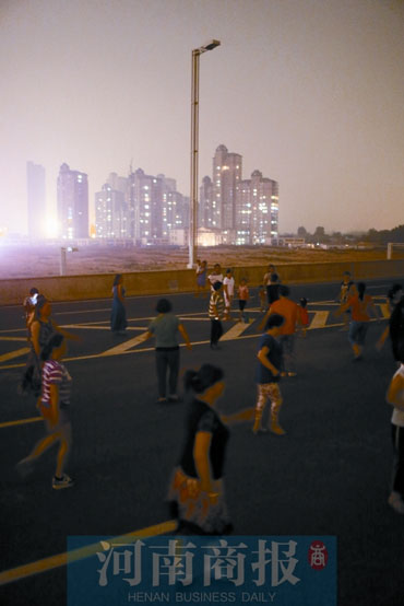 前天晚上7時30分,鄭州市南三環(huán)與京廣路交叉口向南500米路西,幾名市民沿著高架橋匝道向二層走去。高架橋二層橋面西側,人們三五成群,大人們邊走邊聊天,小孩兒則在車道上嬉笑玩耍。東側,一名女士大步快速地向北走,“不刮風不下雨,沒事兒就來這鍛煉?!贝送?,還有30多名市民正在跳廣場舞。