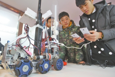 咱鄭州的學(xué)生“玩”機(jī)器人很有一手!11月23日~24日,2015世界青少年機(jī)器人邀請賽在北京舉行,鄭州二中8名高中生組成的隊伍“殺入”四強(qiáng),國內(nèi)排名第二,并榮獲最佳設(shè)計獎。昨日,記者見到了剛剛比賽歸來的學(xué)生們和他們設(shè)計的機(jī)器人。