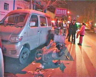 事發(fā)地點位于南關(guān)街與隴海路交叉口向南約100米處,事發(fā)時,路邊有不少小吃攤?!爱?dāng)時豐田車自北向南行駛,先是撞了路邊停著的一輛轎車停了下來。隨后,該車又倒車,撞了路邊的兩個小吃攤。接著,該車?yán)^續(xù)前行,又蹭了我的車和另外一輛面包車?!鞭I車司機(jī)王師傅說。