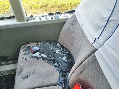車座上都是碎玻璃