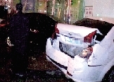 轎車半夜下橋太快連撞三車 一輛車被撞進(jìn)路邊店鋪
