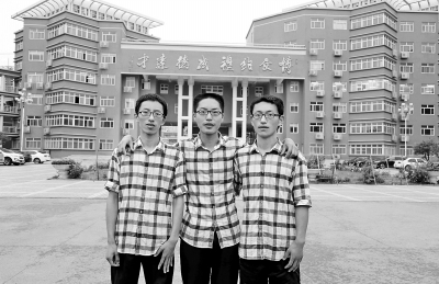 本報(bào)南陽(yáng)訊南陽(yáng)有一家三胞胎參加了今年高考,全過(guò)了一本分?jǐn)?shù)線,喜壞了父母,也轟動(dòng)了南陽(yáng)。昨日記者采訪時(shí),身著同樣的花格子上衣、黑褲子,同樣戴著眼鏡的三兄弟正在與老師商量著填報(bào)志愿,三個(gè)人的臉上一直掛著微笑。