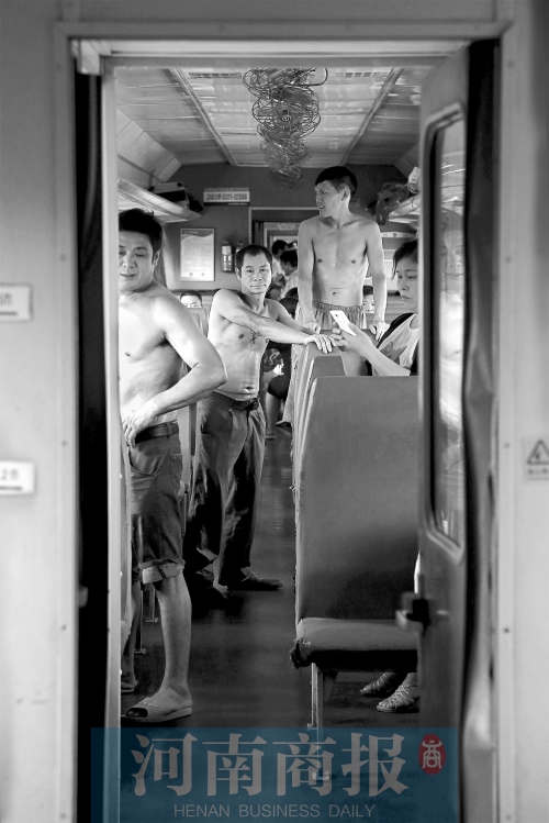 在綠皮車(chē)上,男性乘客多“光膀”