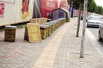 昨日上午,市民致電本報(bào)稱,啟福大道與南水北調(diào)渠北200米處,啟福中華小區(qū)北門(mén)口的人行道上,有人擺放了30多箱蜜蜂,不僅占道,不時(shí)飛出的蜜蜂還侵?jǐn)_行人。