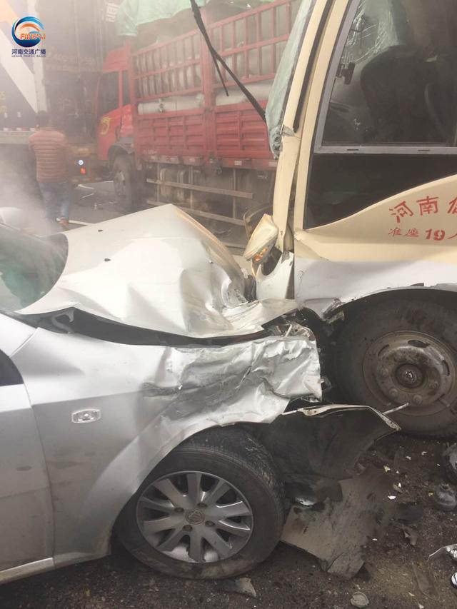 今天(11月14日)連霍高速西向東方向,距開(kāi)封下站口3.5公里左右,發(fā)生多車(chē)連環(huán)追尾事故,車(chē)損很?chē)?yán)重,有人員受傷。