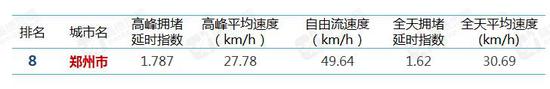 1。一季度鄭州市擁堵程度排名第8