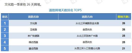 6。二季度鄭州哪條路擁堵天數(shù)最多?