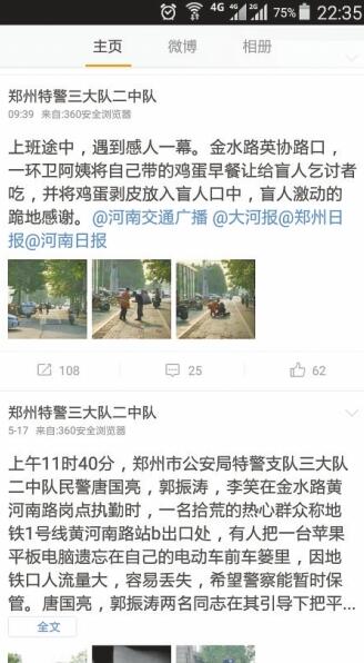 昨日上午9時39分,網(wǎng)友“鄭州特警三大隊二中隊”發(fā)布了一條微博說:“上班途中,遇到感人一幕。金水路英協(xié)路交叉口,一環(huán)衛(wèi)工阿姨將自己帶的早餐給盲人乞討者吃,并將雞蛋剝皮放入盲人口中,盲人激動跪地感謝。”