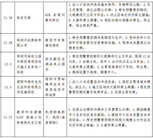 12月7日,記者從鄭州市環(huán)境污染防治攻堅辦了解到,11月27日至12月3日,鄭州市環(huán)境污染防治督導(dǎo)組重點對全市"封土行動"方案、橙色預(yù)警管控措施落實和30天沖刺行動方案落實情況進行督導(dǎo)檢查。從督查情況來看,大部分單位都夠按照要求,落實"封土令"和預(yù)警管控措施,但也有個別施工工地和企業(yè)未按要求停工、停產(chǎn)或限產(chǎn)減排。