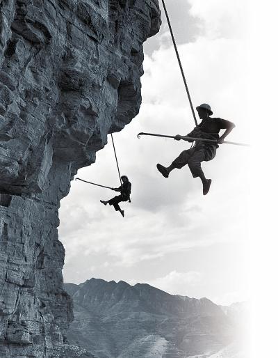 和楊貴第二次見面是在1960年2月,春節(jié)剛過,寒風凜冽刺骨,那時,魏德忠去林縣采訪山區(qū)建設(shè)情況,車行至山腳下,當聽到崖上開鑿打洞的聲音時,循聲望去,只見一個個腰系繩索,懸掛在崖壁上的開鑿巖石的身影??吹蕉嗳苏谛藿ㄋ恼鸷硤雒?,特別激動,“這不是當年的愚公移山嗎?”