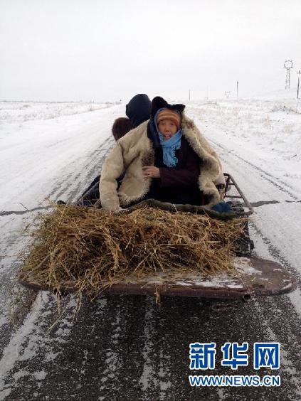 由于降雪導(dǎo)致牧區(qū)交通不暢,給牧民的生產(chǎn)生活帶來(lái)很大的困難。采訪沿途,記者見到了一輛毛驢車上從遠(yuǎn)處駛來(lái),車上坐著兩位老人。73歲的正藍(lán)旗烏蘭二隊(duì)的農(nóng)民張藍(lán)花說,雪太大班車也不通,老伴犯了腎病,他們只好在家門口鏟出小道,趕著毛驢車走到了公路上,準(zhǔn)備到鎮(zhèn)醫(yī)院看病。