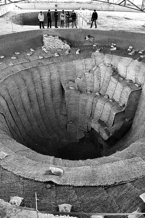 記者現(xiàn)場看到,倉窖呈圓形,有內(nèi)外兩層,內(nèi)層深,外層淺,所以在內(nèi)外層之間形成一個圓環(huán)狀的平臺。
