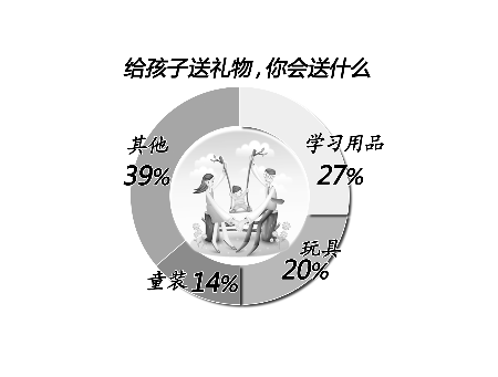 昨天,河南商報聯(lián)合河南一百度發(fā)起問卷調查,近200名家長參與。調查表明,近六成家長花費在500元以內。多數(shù)孩子不會主動向家長要禮物,但仍有32%的家長表示“兒童節(jié),孩子會主動要禮物”。