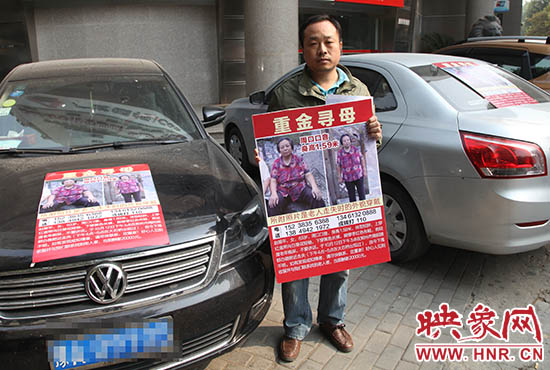 周口老太鄭州走失將近10天 兒子重金尋母