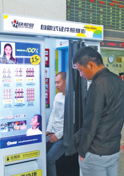 辦證窗口旁邊一臺(tái)自拍機(jī)專為沒(méi)照片者拍照