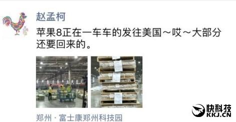 富士康打包裝貨iPhone 8被拍:一車車從鄭州運往美國