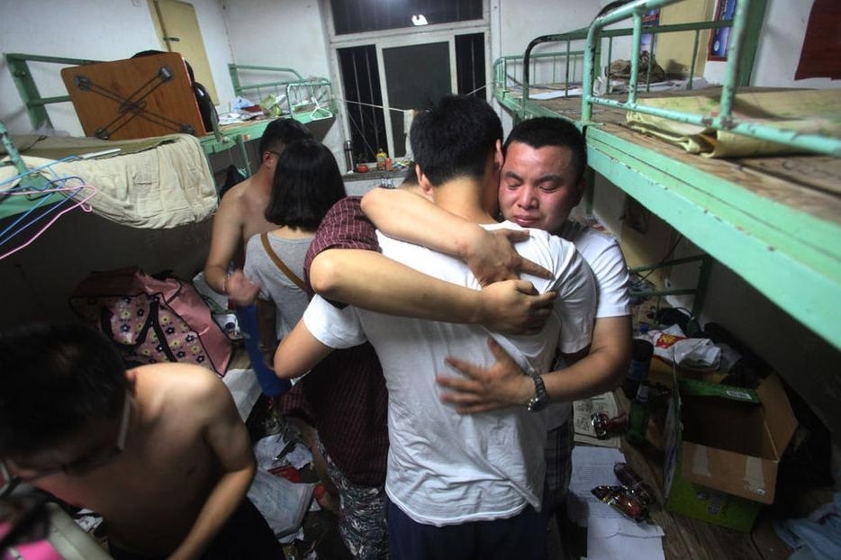 2013年6月24日,山東濟(jì)南,在山東師范大學(xué)宿舍樓里,舍友們緊緊抱在一起不舍離去。因為這是他們大學(xué)生生涯的最后一夜。當(dāng)晚,大學(xué)生們無法入眠,酒杯聲、哭聲交織在整個宿舍樓。第二天起床就要背著行囊啟程了,此時...