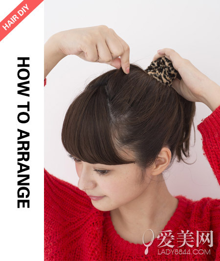 step2:留出頭頂的頭發(fā)將腦后的頭發(fā)綁成馬尾。