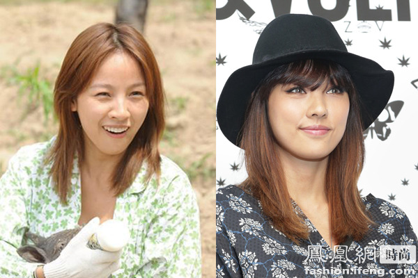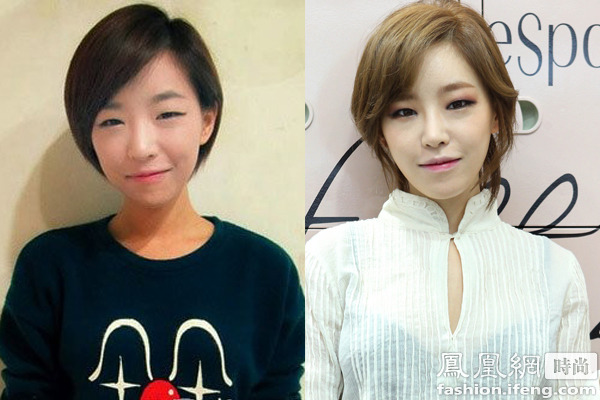 性感女神李孝利素顏也不會(huì)顯老,只是眼睛看著無(wú)神,化妝后加上空氣劉海的襯托一下子變年輕了。