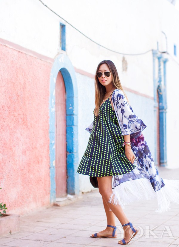 連衣裙可以搭短褲!但不是保險健美褲!這里說的短褲最好是牛仔短褲,緊身款很顯身材,今季風(fēng)靡的鏤空民族風(fēng)短裙就和牛仔短褲很搭,性感大長腿,即便走光也無所謂,牛仔短褲又可以讓你變身性感長腿女郎。