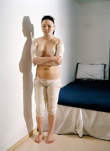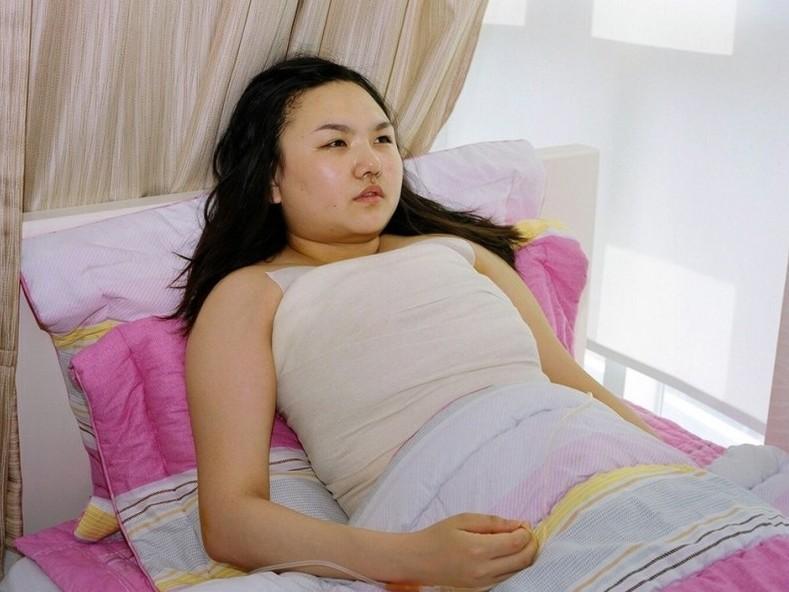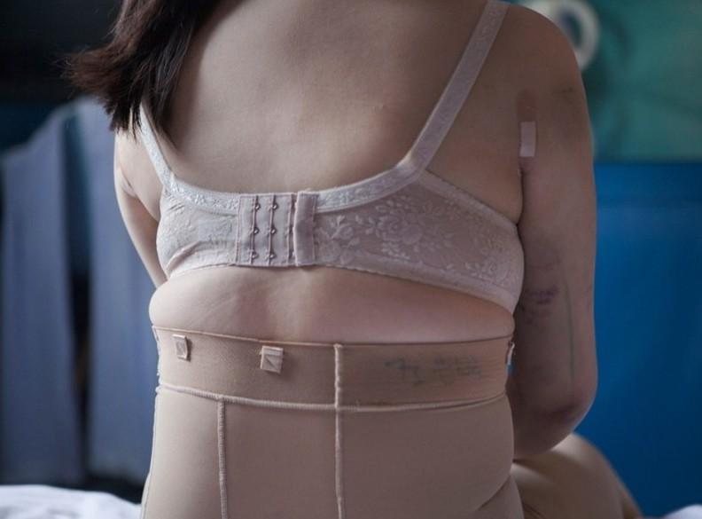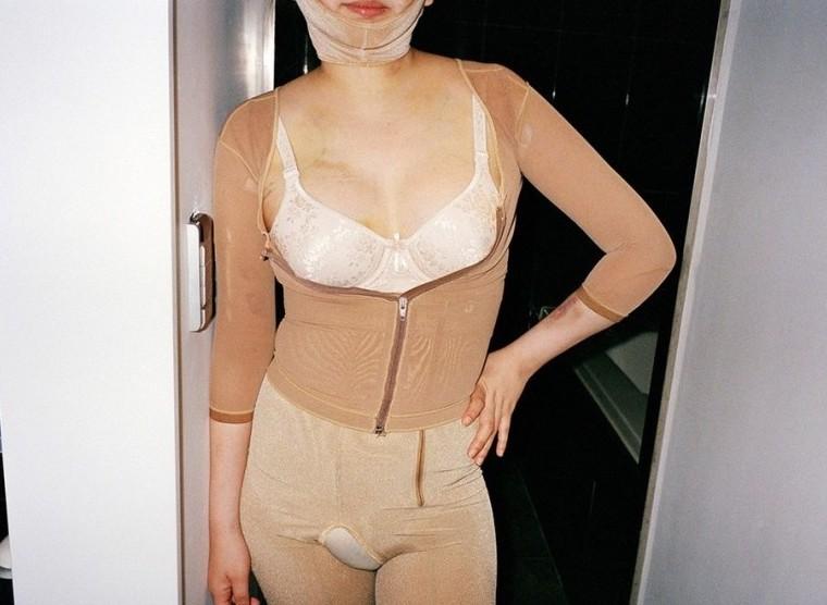 束身衣上下的身型是她的過去和未來,滿是術(shù)后的淤青,疼痛成為美麗代價(jià)的一部分。
