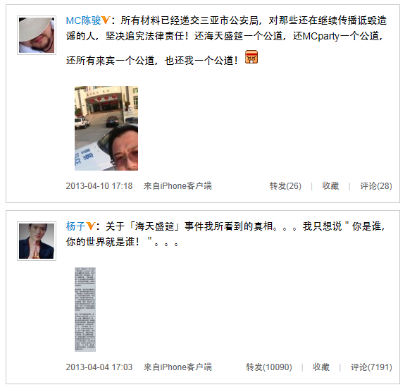 近幾日,三亞“海天盛筵”涉黃,淫亂派對的新聞可謂瘋傳網(wǎng)絡(luò)。早前有媒體報道,三亞市委宣傳部曾于4月4日向媒體發(fā)布新聞通稿,稱已經(jīng)對網(wǎng)上有關(guān)“海天盛筵聚眾淫亂”傳聞?wù)归_調(diào)查,對此事非常重視。三亞警方今日已正式通知“海天盛筵”主辦方三亞鴻洲國際游艇會、“MC白色派對”主辦方MC俱樂部等相關(guān)單位負責(zé)人于4月8日面談,配合調(diào)查工作。今天,“海天盛筵”主辦方之一,候鳥俱樂部負責(zé)人陳駿發(fā)微博稱,自己已經(jīng)將所有材料遞交三亞市公安局,將對那些還在繼續(xù)傳播詆毀造謠的人,堅決追究法律責(zé)任。希望可以還海天盛筵一個公道。