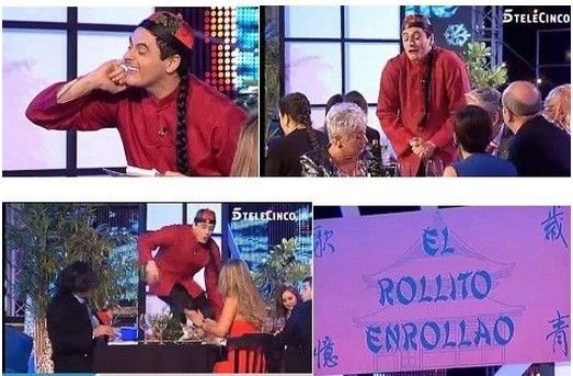 根據(jù)西班牙華文媒體《歐浪網(wǎng)》報(bào)道,該電視臺(tái)在跨年節(jié)目《平安之夜》(La Noche en Paz)中,其中一段短劇描述當(dāng)?shù)匾幻鸦槟凶?,在中國餐廳私會(huì)新女友,巧遇到妻子和岳父、岳母,只好多次換裝周旋于雙方之間,但最后還是被揭穿。