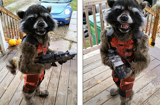 據(jù)悉,這件套裝仿照電影《銀河護(hù)衛(wèi)隊(duì)》里的漫畫角色“火箭浣熊”制作而成。該電影的導(dǎo)演詹姆斯·古恩(James Gunn)在網(wǎng)上看到后贊譽(yù)有加,稱“又一件超酷的萬圣節(jié)服飾,大家真的是棒極了!”