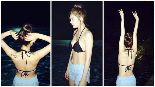 23歲的泫雅昨天看起來似乎是在戶外泳池戲水,她po出3張上半身穿著黑色比基尼、下半身套上藍(lán)色短褲的照片,還寫道:“度過一段美好的時光,好開心?!闭掌械乃裏o論是側(cè)面或背影,身材都完美得無懈可擊,難怪吸引逾11萬粉絲按贊。