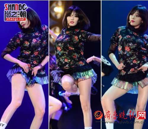 泫雅最火的是她的小短裙事件圖片。在各種舞蹈場合,泫雅都是超短熱褲上陣,大跳勁舞性感撩人,被批無視禁止未成年藝人過分暴露的新例。