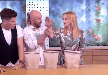 波蘭魔術(shù)師亮相電視節(jié)目表演,卻出錯令女主持被大釘插傷手掌,在直播鏡頭前痛得大叫彎腰。波蘭魔術(shù)師亮相電視節(jié)目表演,卻出錯令女主持被大釘插傷手掌,在直播鏡頭前痛得大叫彎腰。
