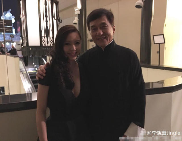 王力宏老婆李靚蕾在微博曬出與成龍大哥的合照,配文稱,“恭喜大哥成龍成為第一個獲得奧斯卡終身成就獎的中國演員?!闭掌?,李靚蕾身著一襲深V黑色禮服,大秀性感身材。