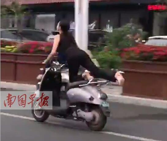 4月24日,有網(wǎng)友在微博上發(fā)布一段視頻:一女車手騎電驢的方式有些奇葩,車輛行駛過(guò)程中,女子突然往后伸出大長(zhǎng)腿,擺出“飛行”姿勢(shì)一路前行?!薄 ∵€有網(wǎng)友調(diào)侃說(shuō),“沒(méi)想到你是這樣深藏不露的大長(zhǎng)腿”,認(rèn)為該女子的駕車行為頗為奇葩。