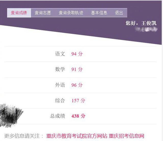 據(jù)悉,王俊凱438分的總成績在重慶市的高考分?jǐn)?shù)線中,超過二本線2分,對于一個藝考成績來說,實屬不易。