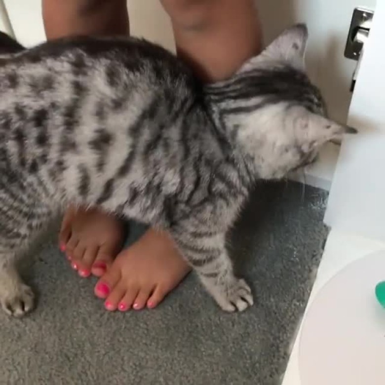 最后喂完貓后張柏芝拿起手機(jī)拍攝,這時(shí)候貓?zhí)搅诵的腳上。在鏡頭里面我們意外發(fā)現(xiàn)小Q的腳趾甲全部都涂了腳指甲油,而且顏色還是非常亮眼的粉紅色,看來(lái)小Q內(nèi)心保持著一顆少女心啦。