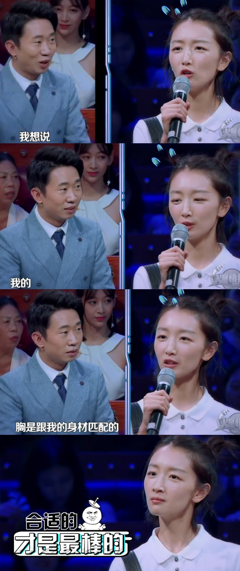 節(jié)目的某一環(huán)節(jié),為了回饋粉絲對(duì)于火星情報(bào)局的愛,作為情報(bào)局的郵遞員楊迪讀了一封粉絲寫給周冬雨的信,第一句話就直戳了周冬雨的要害:“首先作為你的粉絲,我們真的不嫌棄你的胸小,哈哈哈”,這個(gè)話題尷尬得讓人覺得楊迪就是要搞!事!情!