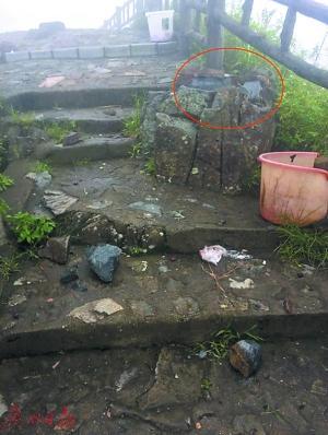 另據(jù)隊長羅燦輝在山頂上察看發(fā)現(xiàn),山頂有多塊巨石被雷電擊碎散落在地面上。其中有一塊被擊碎的巨石,后經(jīng)證實(shí),就是事發(fā)時王女士所站的區(qū)域。