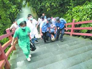 “兩人似乎筋疲力盡,尤其是受傷的王女士。”溫漢華說,醫(yī)護(hù)人員立即對王女士展開救治,然后將她抬上了擔(dān)架,由他和同事溫先生及4名輔警一路抬至山下。