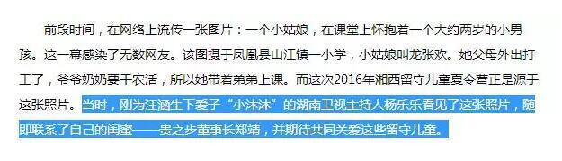 根據(jù)2016年7月一篇來(lái)自新浪湖南的文章——《貴之步發(fā)起愛心夏令營(yíng)情暖湘西留守兒童》描述,湖南衛(wèi)視主持人楊樂(lè)樂(lè)的閨蜜,便是此次被告上法院的貴之步董事長(zhǎng)鄭靖。