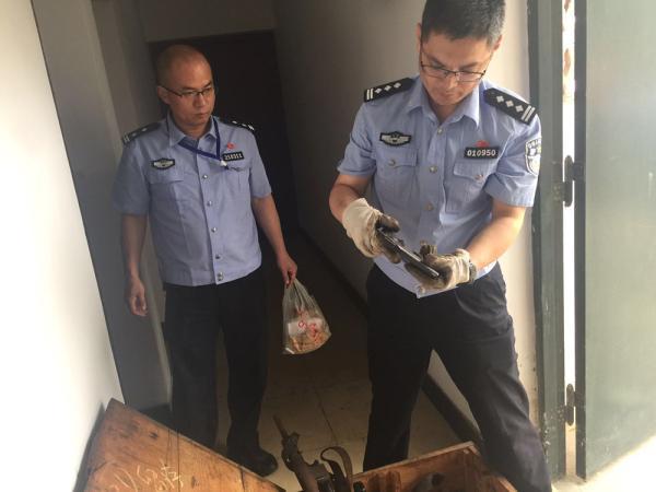 周向陽(右)在相關單位檢查清點槍支。 本組圖片 南京警方提供