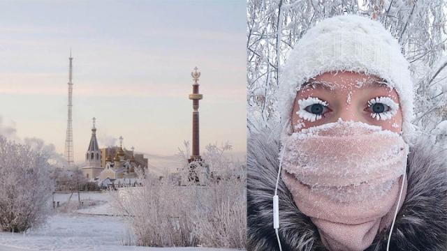 近日,位于俄羅斯西伯利亞東北部的奧伊米亞康村測得攝氏零下67度的極寒天氣,幾乎追平1933年測到的零下67.7度記錄,居民外出時連睫毛也結(jié)了一層厚厚的霜。