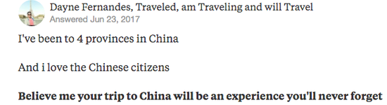 在美國問答網(wǎng)站Quora上隨便一搜“Chinatravel”,海量結果秒秒鐘刷屏。外國網(wǎng)友不是在中國玩得不亦樂乎,就是在準備來中國的路上。還有一些外國小伙伴們表示,來中國旅游,回國后各種崩潰+“水土不服”!