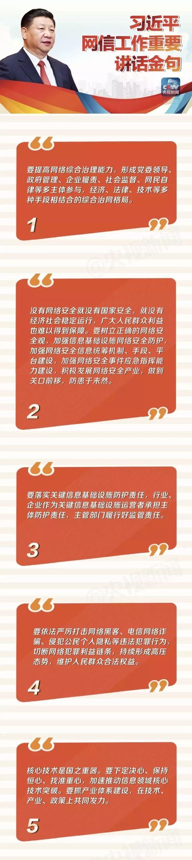 五是加強黨中央對網信工作的集中統(tǒng)一領導,也是體現(xiàn)“黨是領導一切的”重大措施,確保網信事業(yè)始終沿著正確方向前進。