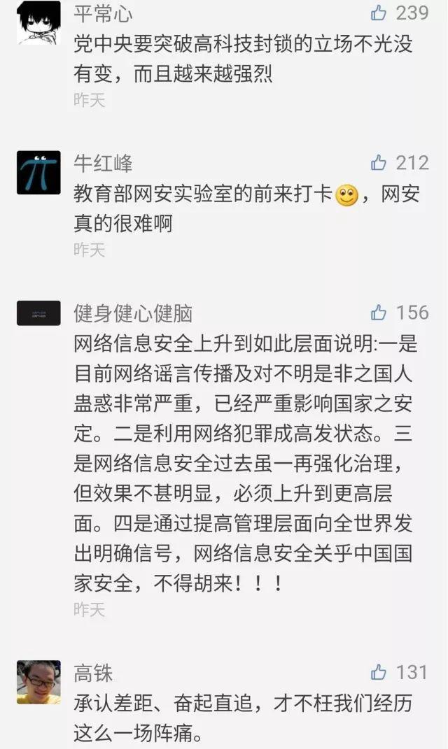 2016年4月的座談會,習近平做了更詳細的論述:網信發(fā)展的意義、網絡輿論生態(tài)、網信核心技術要盡快突破、網絡安全問題、互聯(lián)網企業(yè)要增強使命感和責任感、用好互聯(lián)網人才。這篇講話被稱為“4?19重要講話”。