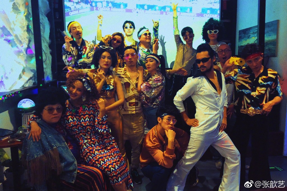 新浪娛樂訊 3日,張歆藝在微博曬出party照,并配文:“復(fù)古disco趴梯,我男人為了冠軍是有多么拼。”照片中,張歆藝與袁弘領(lǐng)銜,眾人都是上世紀80年代舞廳disco復(fù)古風的打扮,群魔亂舞的畫面有點辣眼。