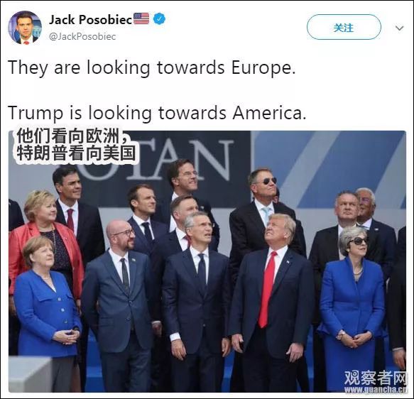 昨天,正在比利時布魯塞爾參加北約峰會的特朗普,又與“盟友”們留下了一張謎一樣的照片。